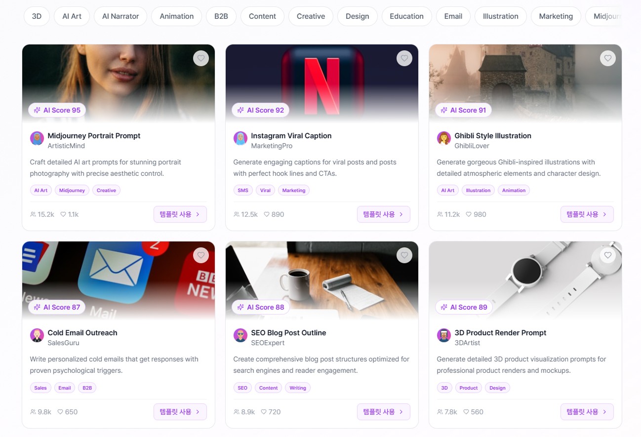 각 AI에 맞게 최적화된 프롬프트가 자동으로 생성되어 최고의 결과물을 제공합니다.