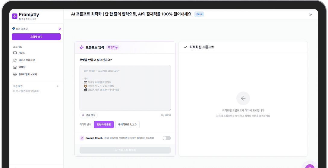 Promptly는 모든 AI에게 즉시 최적화된 프롬프트를
